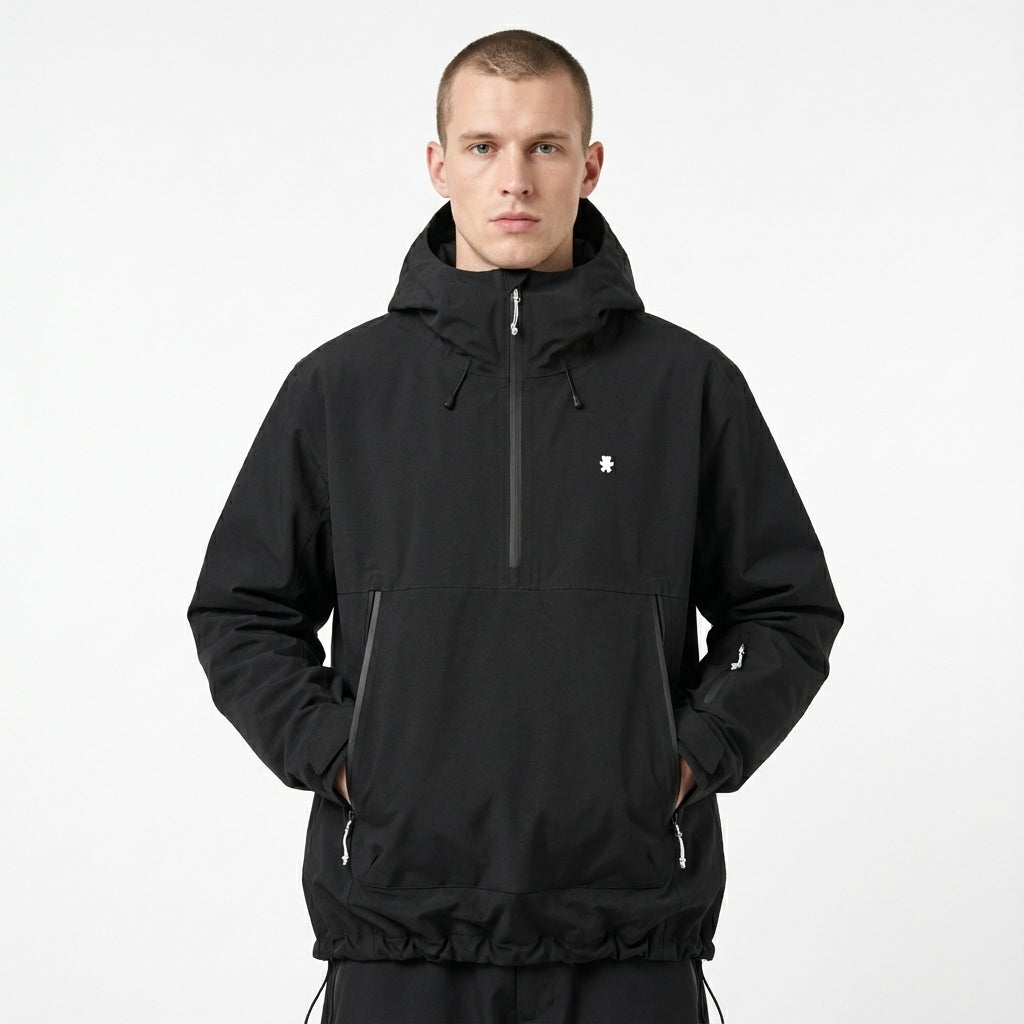 This loose-fit anorak boasts a robust 3L padded construction with 100% cotton knit fabric lining, delivering warmth with a filling weight of 100g/m² for the body and 80g/m² for the sleeves and hood. The high collar design adds an extra layer of protection against biting wind, while the fleece-lined interior offers cozy comfort.