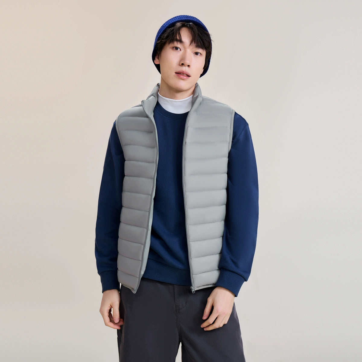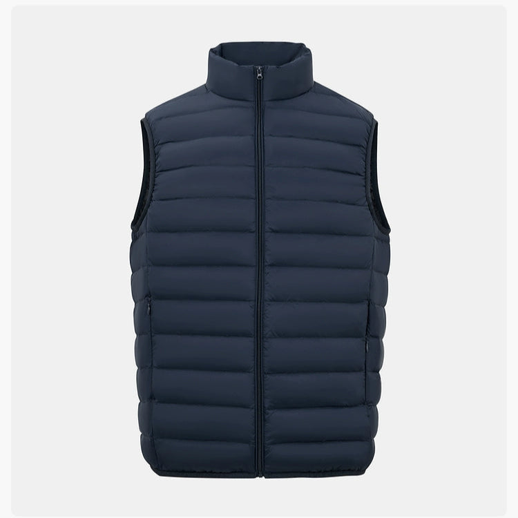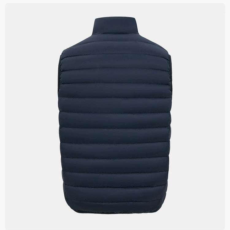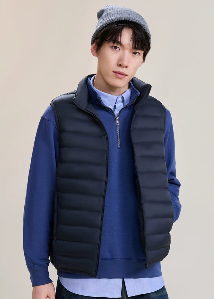 The ThermaGuard Down Vest features a unisex design available in an array of sophisticated colors: Midnight Blue, Charcoal Blue, Soft Sage Green, Midnight Shadow, and Pale Grey. Its lightweight and compact build ensures effortlessly versatile layering.