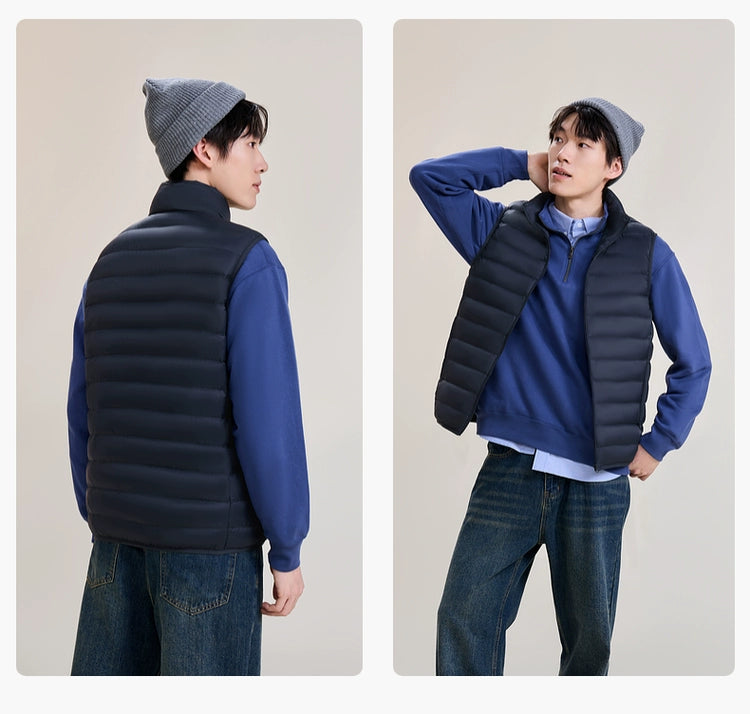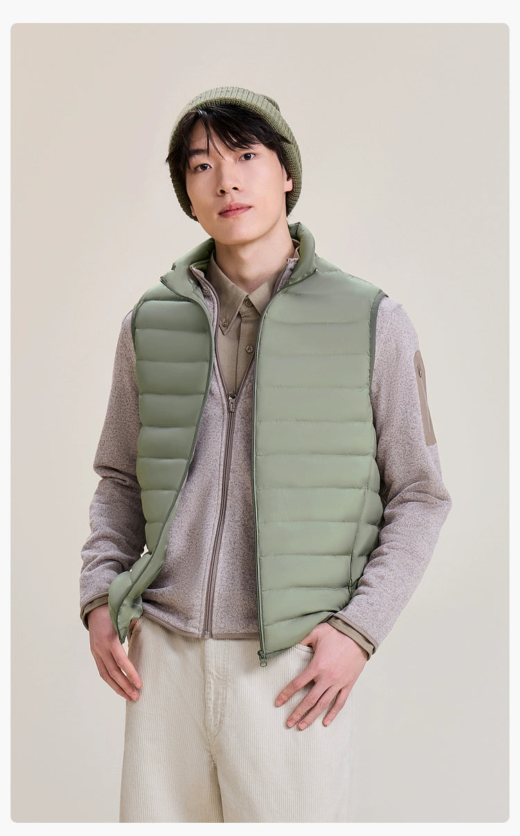 This vest is crafted from 100% nylon and boasts a 20D matte nylon water-repellent fabric, offering exceptional protection against the elements while maintaining breathability. With an impressive loftiness rating of 610+, it provides substantial warmth with a fill of 85% premium duck down.
