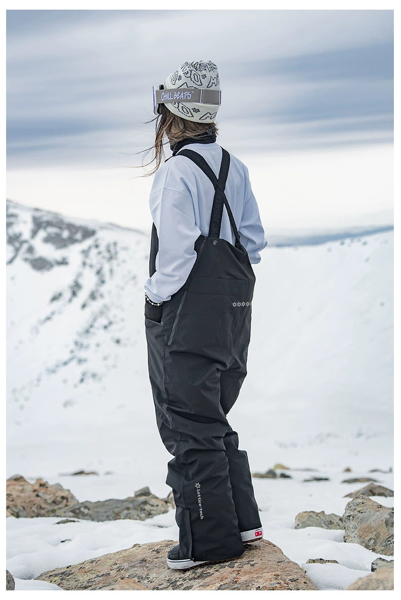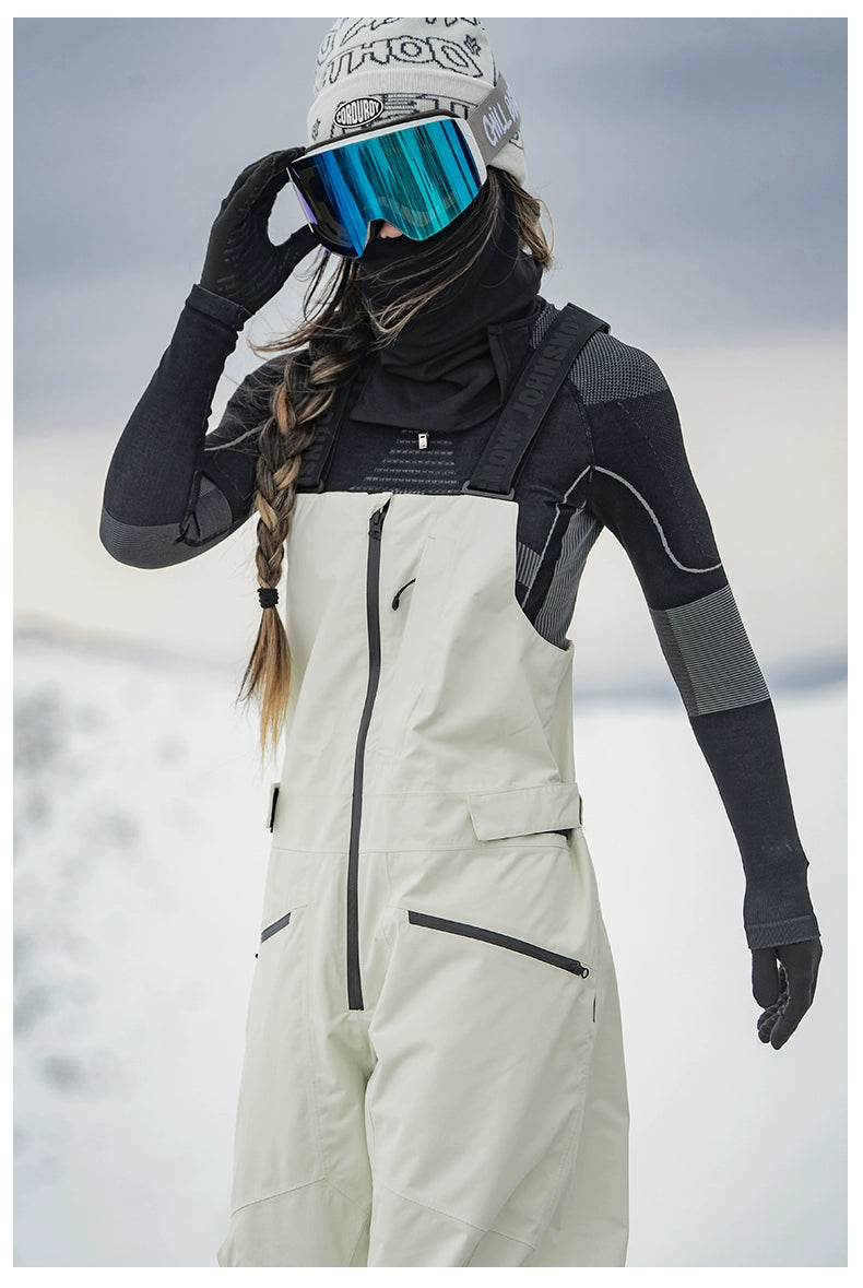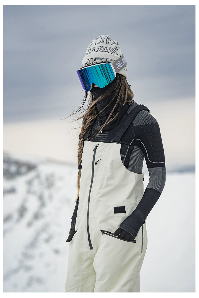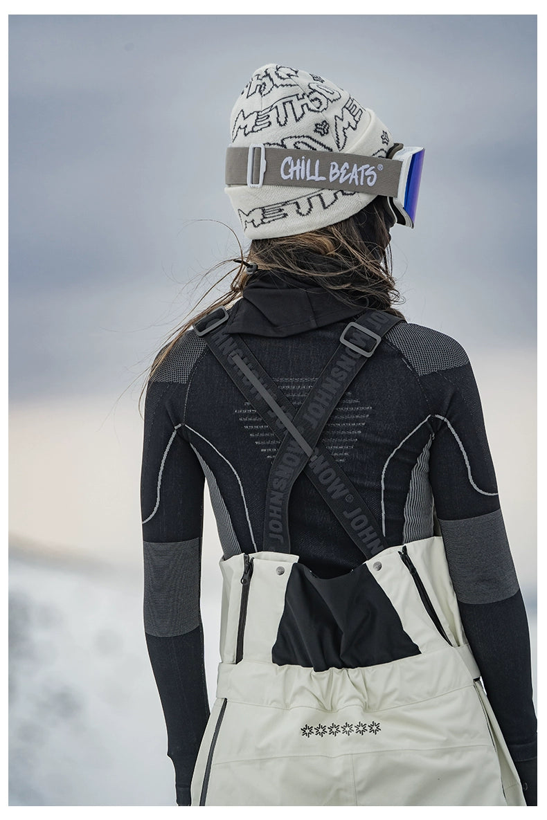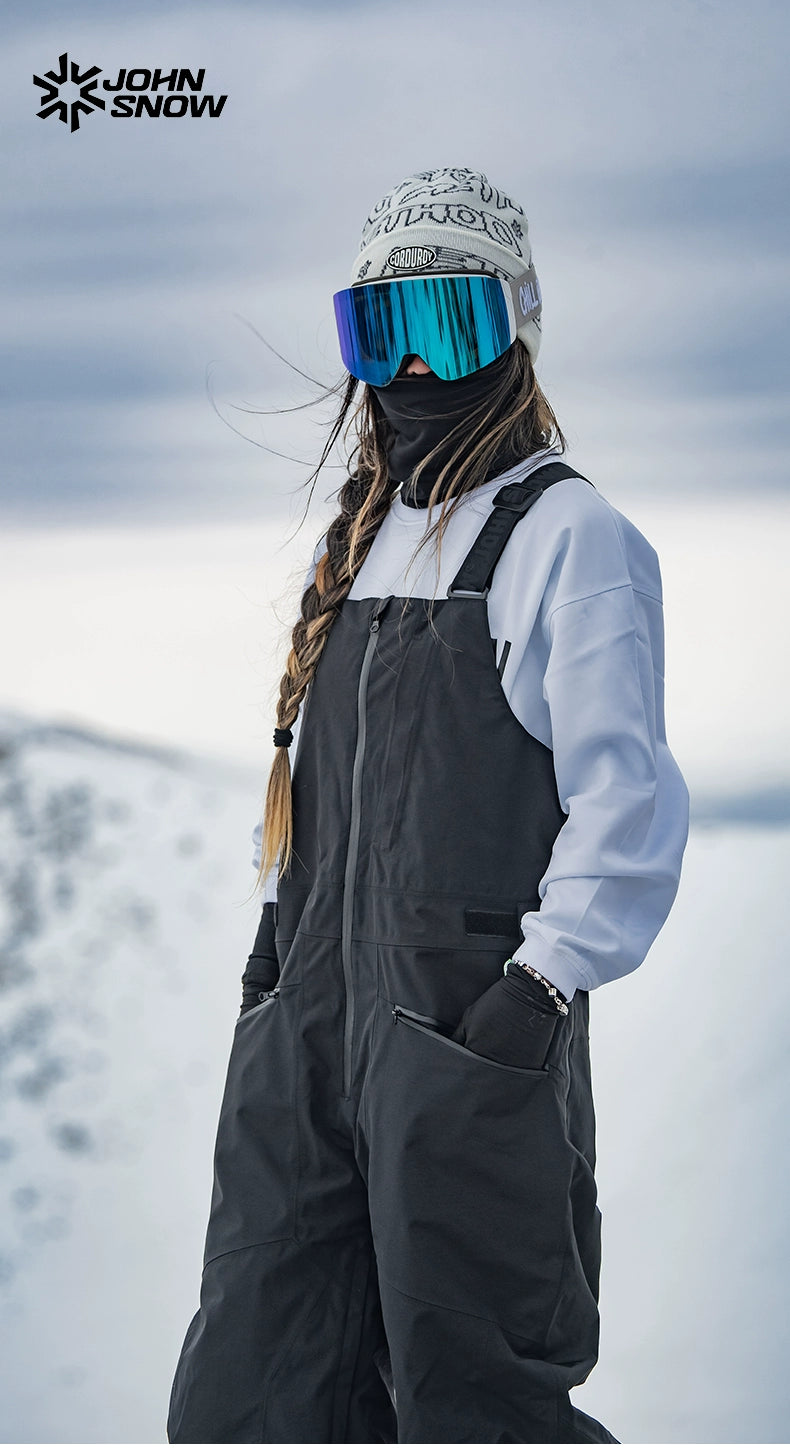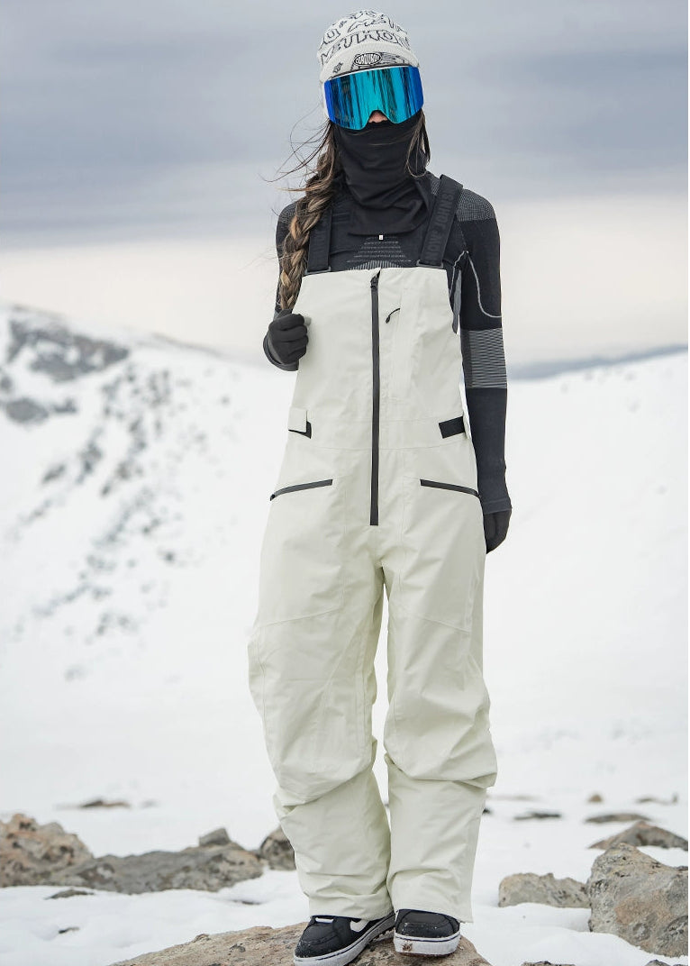Featuring a sleek bib design, elastic suspender straps and adjustable waist for a customizable fit, this bib showcases a full-length front zipper and fully taped seams to keep out snow and wind. Two zippered pockets on the chest and waist provide secure storage, while the stereoscopic cutting enhances mobility and style. Available in classic Black and Off-white, it’s crafted to withstand over 200,000 abrasion cycles and rated Level 4-5 for surface water repellency.
