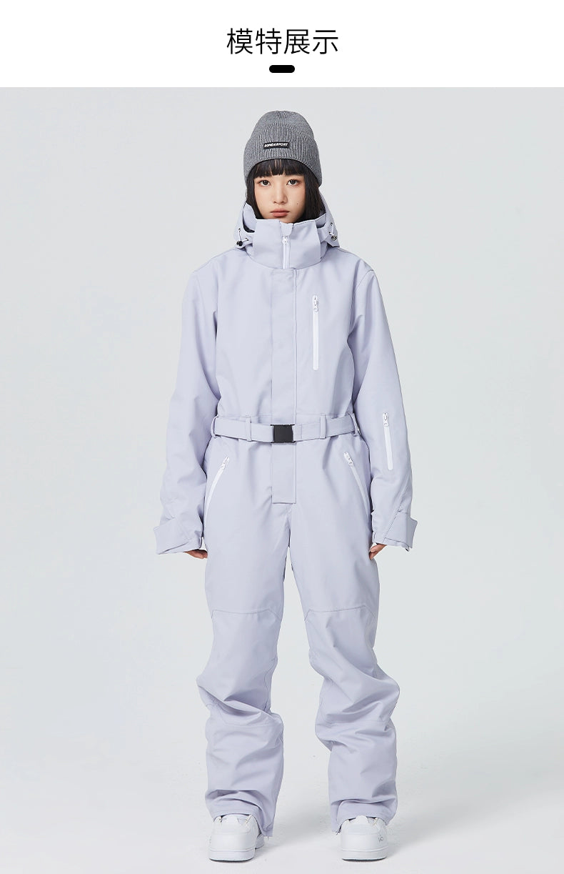 Conquer the slopes in style with the Searipe ThermoGuard Snowboard Jumpsuit, designed to keep you warm, dry, and comfortable. Perfect for skiing or snowboarding, this jumpsuit merges functionality with fashion, featuring a modern aesthetic in colors like Ice Blue, Black, Off-white, and Light Purple.