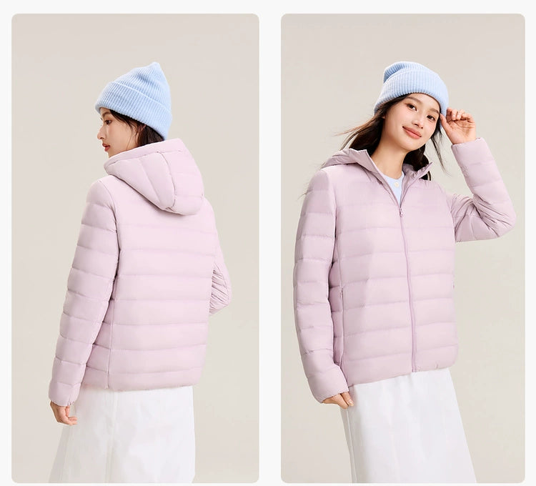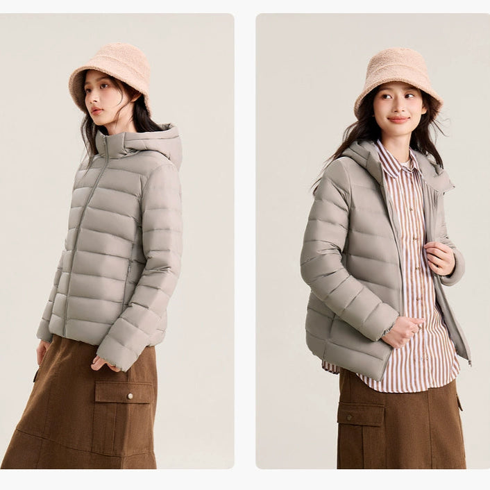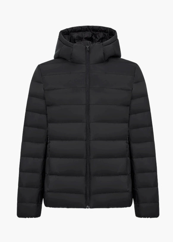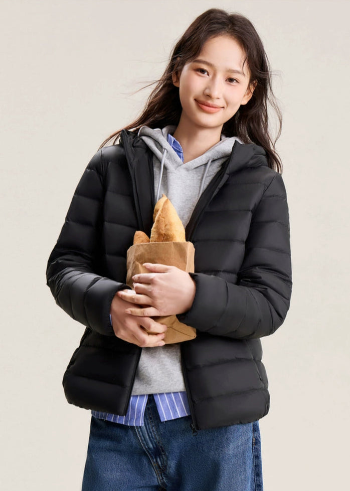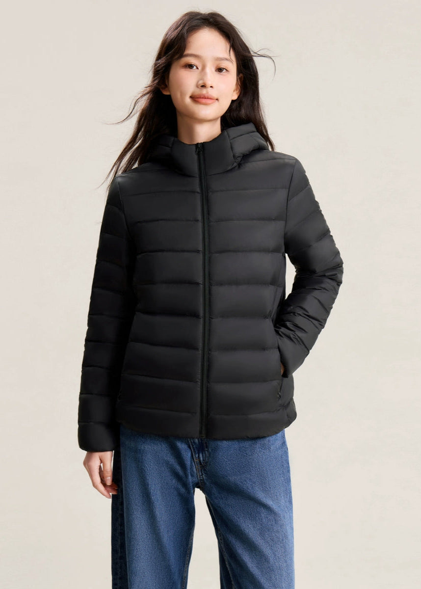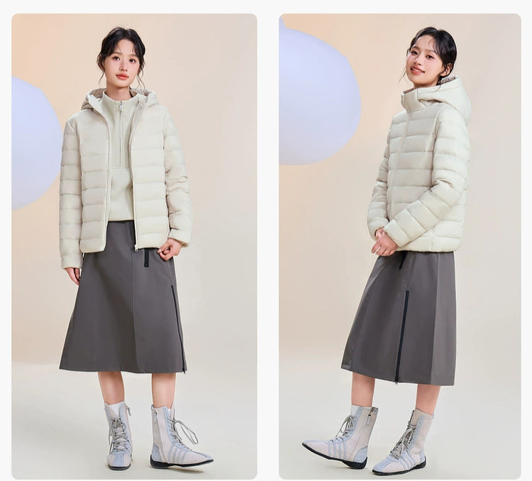 Technical & Functional Excellence: Crafted from top-quality 20D matte nylon, the fabric provides a water-repellent finish that ensures you stay dry, no matter the weather. The 85% duck down fill ensures optimal warmth with a lightweight profile, comparable to the weight of an apple. An internal drawcord at the hem and elastic cuffs shield against chilly winds, enhancing its protective capacity.