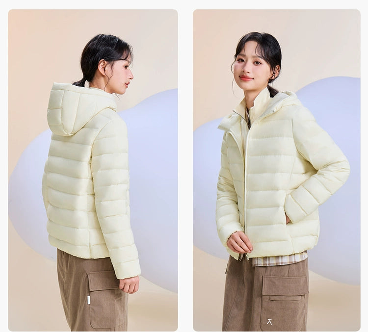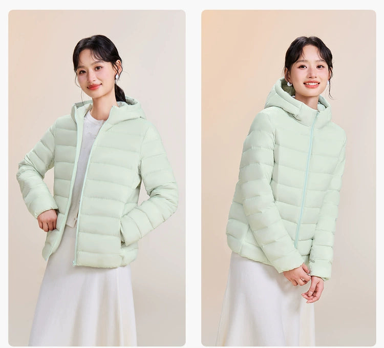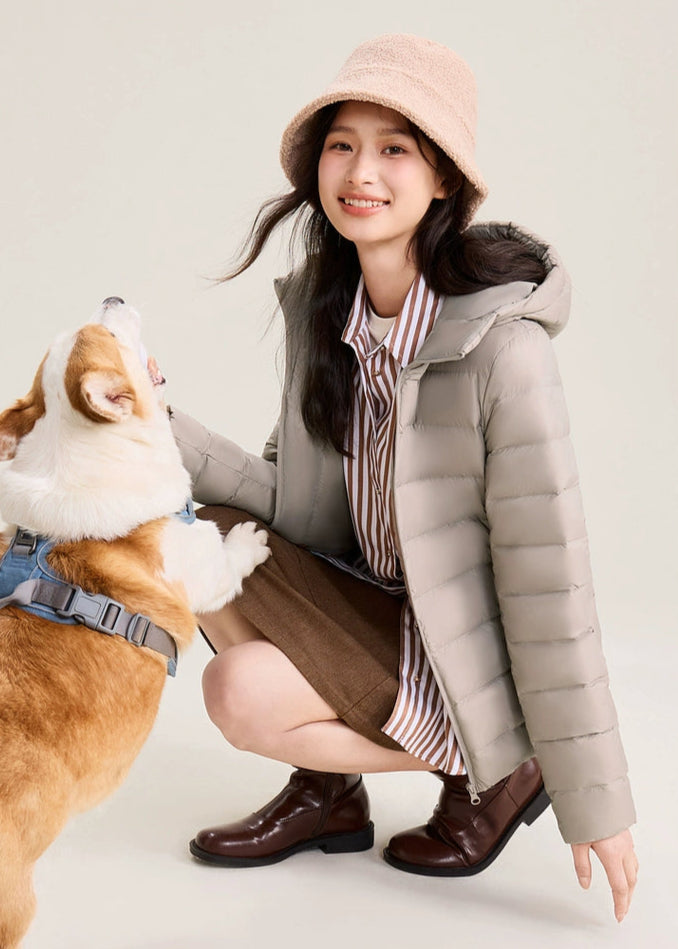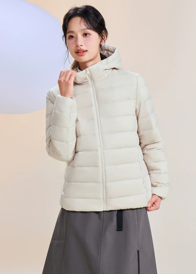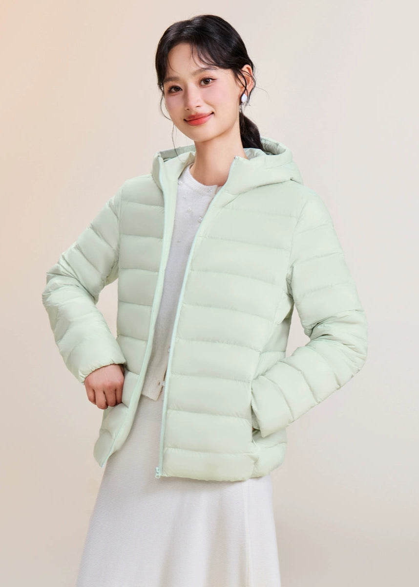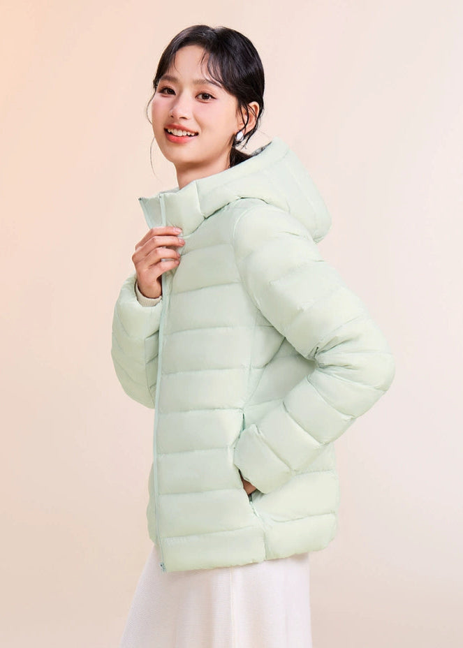Design & Visual Features: The jacket boasts a fashionable hooded design, flawlessly coupled with a full-zip front for effortless transitions between environments. Available in a range of captivating colors such as Mint Breeze, Dusty Lavender, Dusty Grey, Black, Buttercream, and Cream Beige, it complements various personal styles.